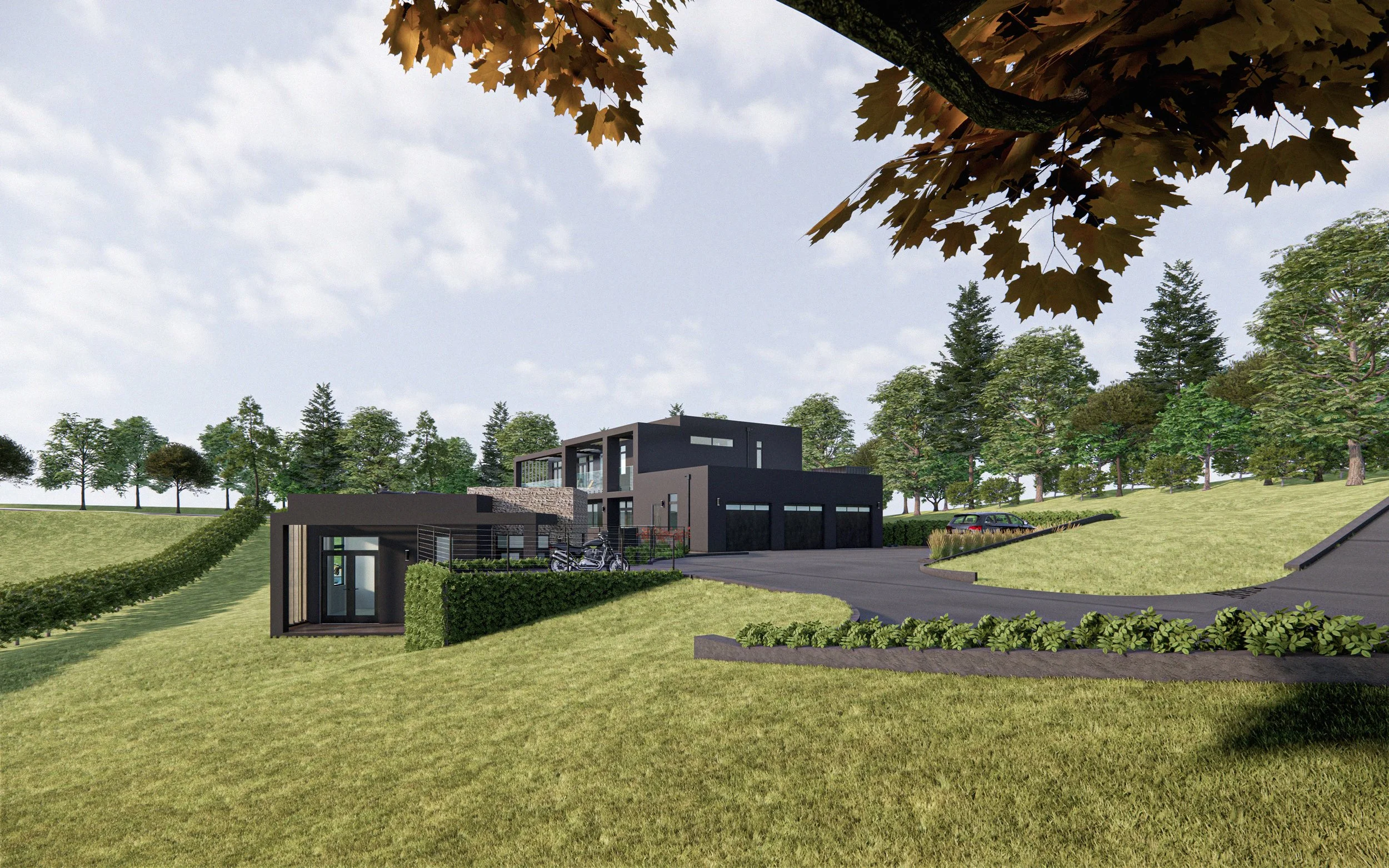 Complementing the main residence is a substantial 1,200-square-foot accessory dwelling unit, ideally suited for multigenerational living, extended guest stays, or a private executive workspace removed from the main household. The outdoor environment has been equally prioritized, with plans calling for a resort-style pool and spa, a bocce court, and multiple outdoor living areas that encourage year-round enjoyment of the land. These spaces are designed to feel immersive and private, extending the home naturally into its surroundings rather than competing with them.