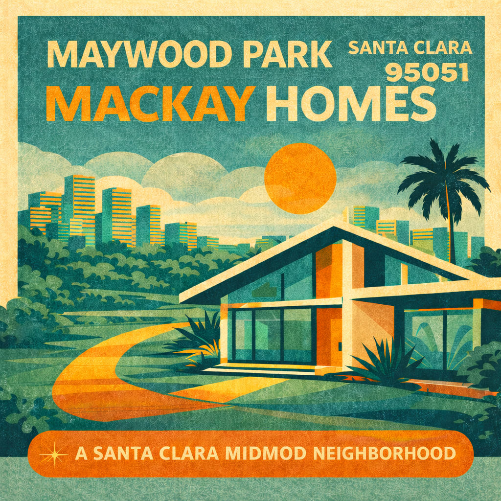 Maywood Park is a rare kind of Silicon Valley neighborhood: small enough to feel intimate, architecturally cohesive, and intentionally planned—yet positioned in a highly connected pocket of Santa Clara’s 95051. The tract is widely associated with Mackay Homes’ postwar modern expansion, with a core build period in the mid-1950s.