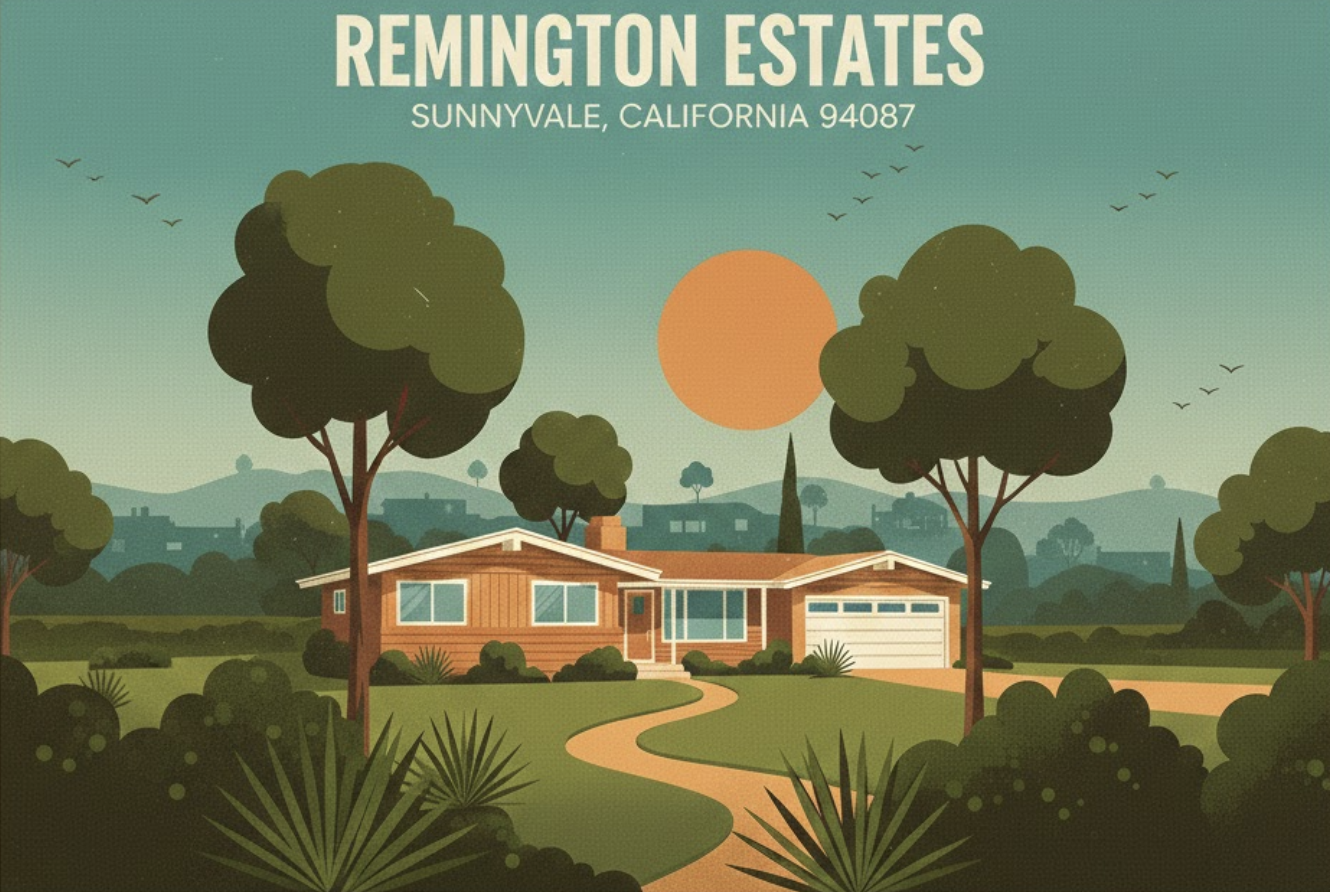 Tucked into the heart of Sunnyvale’s coveted 94087 zip code, Remington Estates stands as one of the most distinctive late-mid-century residential enclaves in the West Valley. Developed in the late 1960s and widely attributed to Kay Homes, this neighborhood represents a thoughtful evolution of the California ranch — larger, more refined, and quietly upscale in both design and infrastructure.